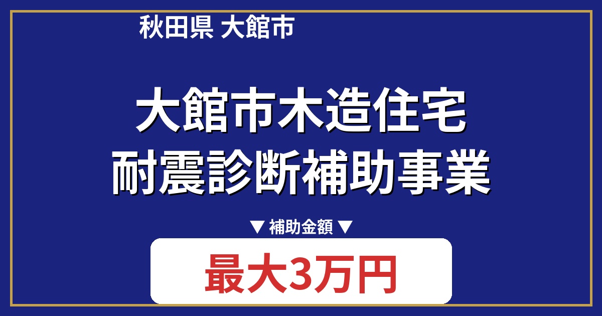 秋田県大館市では、地震に強い安全な住まいづくりを支援するため、「大館市木造住宅耐震診断補助事業」を実施しています。