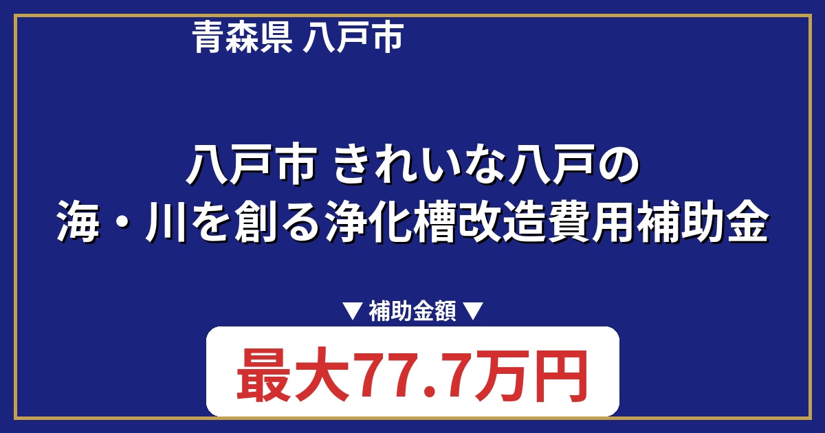 | 制度名 | 八戸市 きれいな八戸の海・川を創る浄化槽改造費用補助金 |