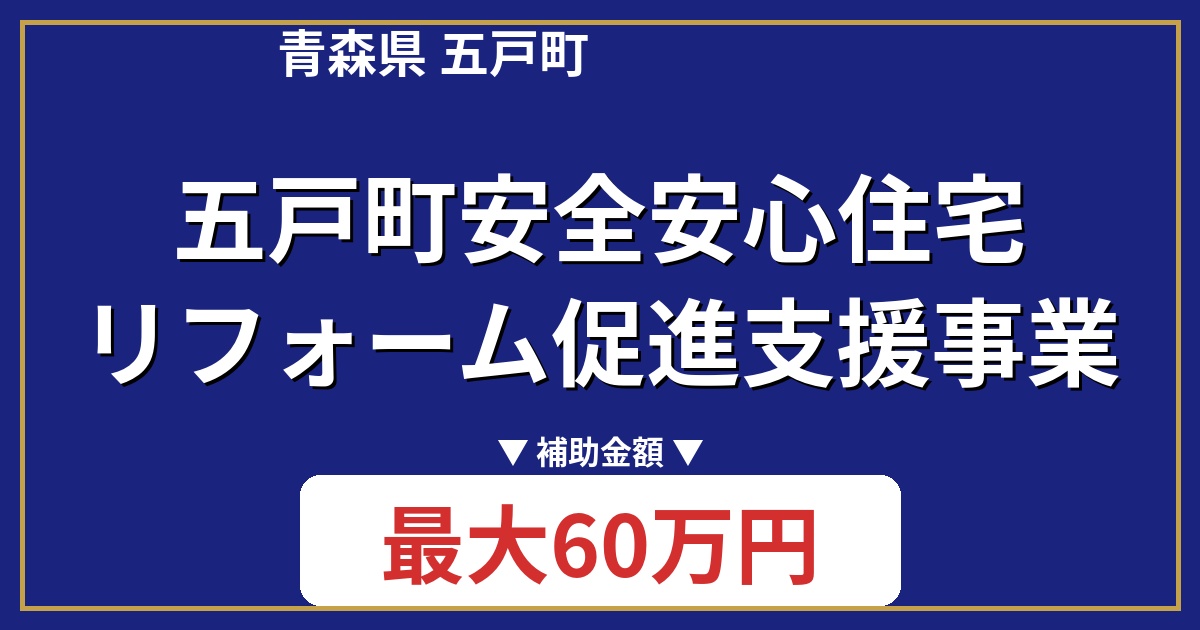 青森県五戸町では、町民の安全・安心な住まいづくりを支援するため、「五戸町安全安心住宅リフォーム促進支援事業」を実施しています。耐震化、バリアフリー化、省エネ化など、住宅の性能向上に繋がるリフォーム工事に対して補助金が交付されます。