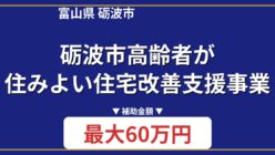 【富山県 砺波市】「砺波市高齢者が住みよい住宅改善支援事業」とは?金額や対象工事をわかりやすく解説