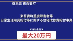 群馬県 【群馬県 東吾妻町】「東吾妻町重度障害者等日常生活用具給付等に関する住宅改修費給付事業」とは?金額や対象工事をわかりやすく解説