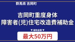 群馬県 【群馬県 吉岡町】「吉岡町重度身体障害者(児)住宅改造費補助金」とは?金額や対象工事をわかりやすく解説