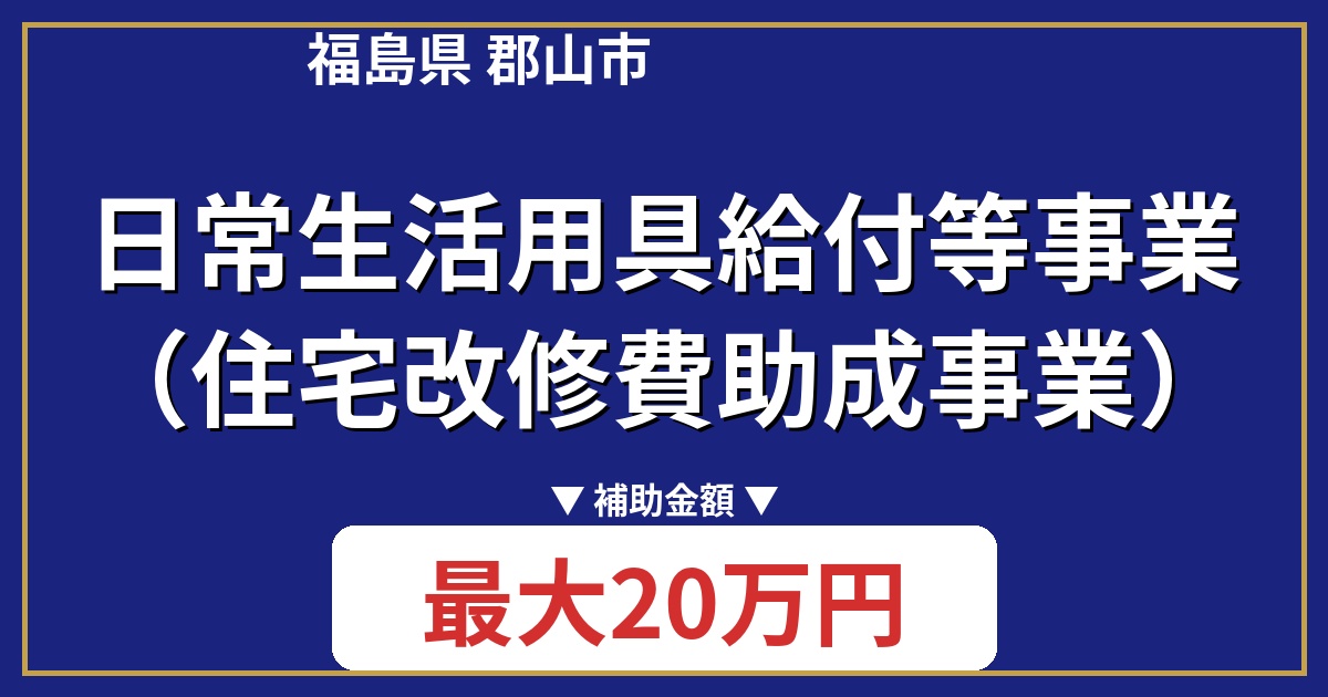 郡山市の日常生活用具給付等事業は、住宅改修費の一部を補助する制度です。バリアフリー化を目的とした工事に対し、最大20万円の補助が受けられます。