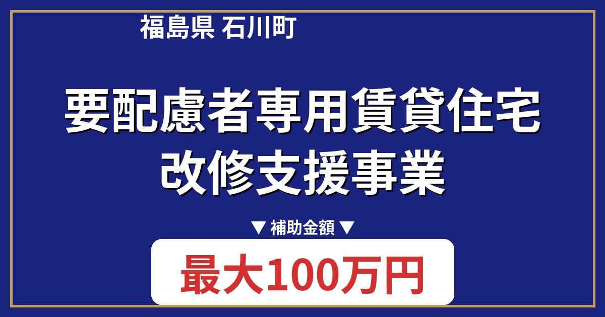 この制度は、石川町内の要配慮者向け賃貸住宅の改修費用を補助するものです。耐震、バリアフリー、省エネ、防災など、幅広い改修工事が対象となります。上限100万円の補助を受けられます。