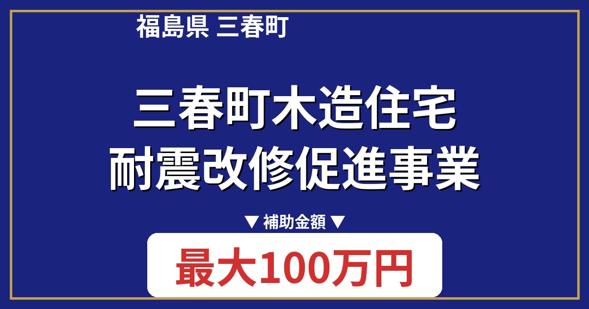 地震に強い家づくりを応援!福島県三春町では、木造住宅の耐震改修を促進するための補助金制度があります。昭和56年5月31日以前に着工された住宅が対象で、耐震改修工事費用の最大50%、上限100万円が補助されます。