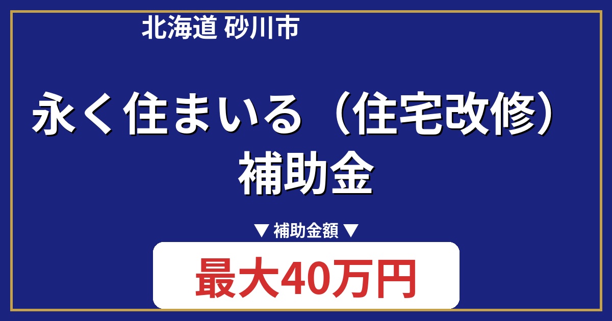 砂川市で住宅の改修を考えている方へ朗報です!「永く住まいる(住宅改修)補助金」は、住宅の耐久性や安全性を向上させるための改修工事を支援する制度です。地元企業との契約で最大40万円、子育て世帯ならさらにお得になるチャンス!