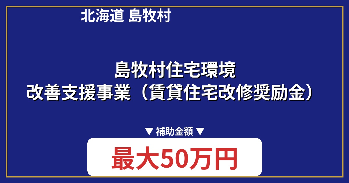 北海道島牧村では、村内の賃貸住宅の環境改善を支援する「島牧村住宅環境改善支援事業」を実施しています。この制度は、賃貸住宅の改修工事費用の一部を補助することで、住環境の向上と村への定住促進を目的としています。