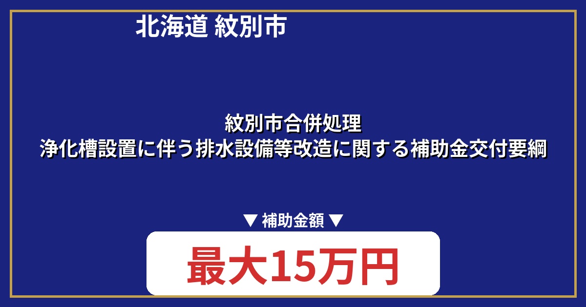 【北海道 紋別市】「紋別市合併処理浄化槽設置に伴う排水設備等改造に関する補助金交付要綱」とは?金額や対象工事をわかりやすく解説
