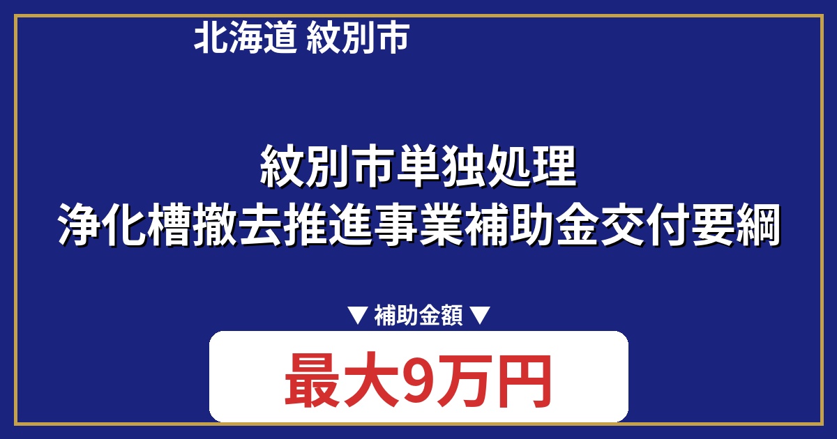 紋別市単独処理浄化槽撤去推進事業補助金は、単独処理浄化槽の撤去費用の一部を補助する制度です。