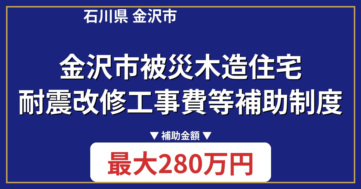 石川県金沢市では、地震による被害を受けた木造住宅の耐震改修を支援する「金沢市被災木造住宅耐震改修工事費等補助制度」があります。