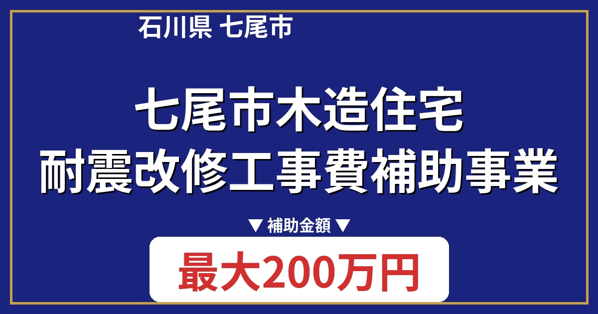 | 制度名 | 七尾市木造住宅耐震改修工事費補助事業 |