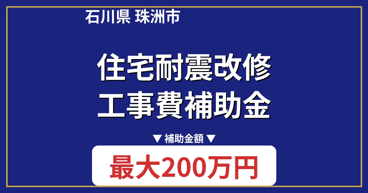 石川県珠洲市では、地震に強い家づくりを支援するため、「住宅耐震改修工事費補助金」を提供しています。