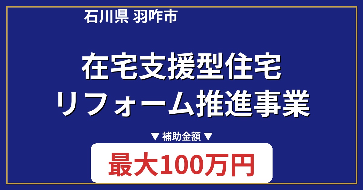 羽咋市の在宅支援型住宅リフォーム推進事業は、高齢者や障害者の方々が安心して在宅生活を送るための住宅改修を支援する制度です。バリアフリー化に関心のある方は、ぜひご活用ください。