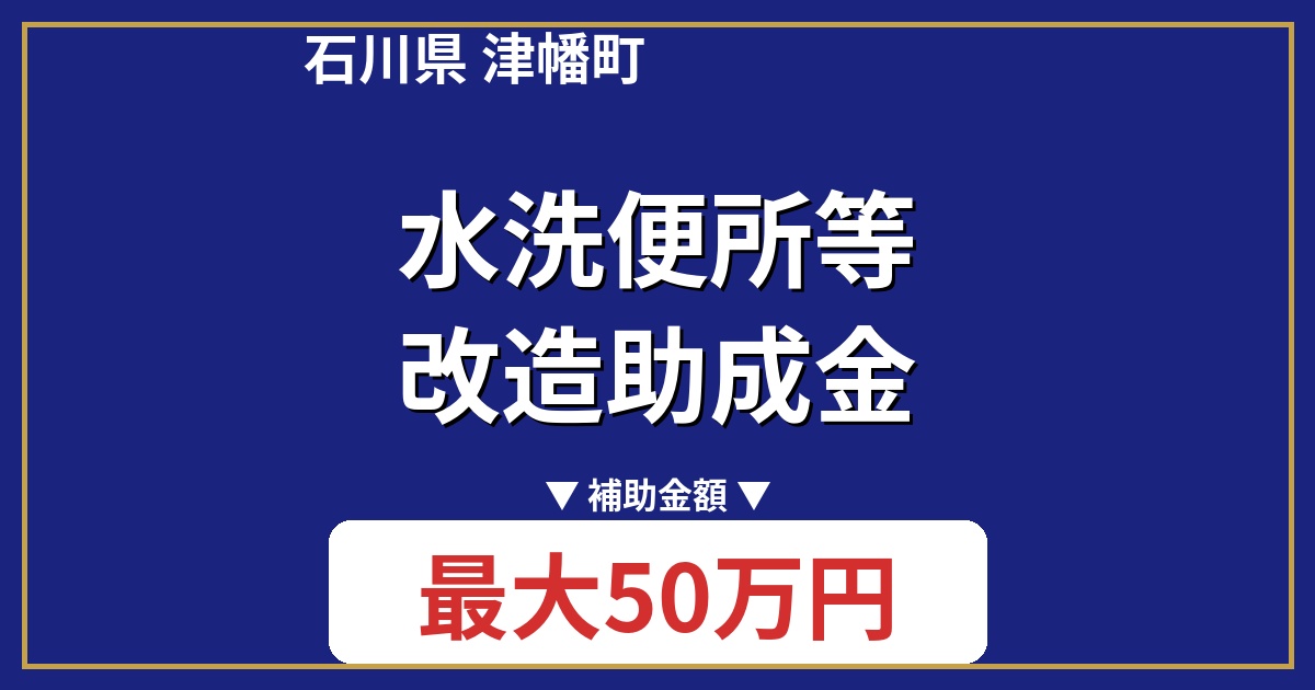 石川県津幡町では、水洗便所等改造助成金という制度があります。