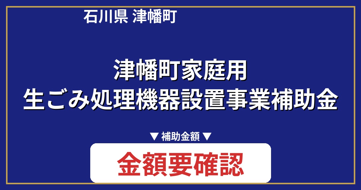 石川県津幡町では、家庭から出る生ごみを減らし、環境に優しいまちづくりを推進するため、家庭用生ごみ処理機器の設置を支援する補助金制度があります。