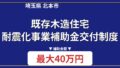 工事費用の一部を補助する制度です。補助金額は、標準工事単価に基づいて計算されますが、実際の支払額が標準単価より安い場合は、支払額の1/2が助成額となります。