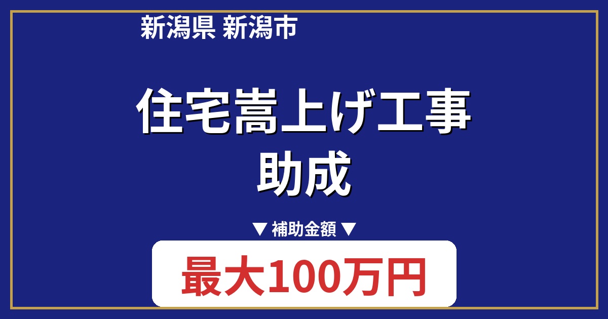 この制度は、新潟市内で過去に床上浸水被害が発生した住宅を対象に、住宅の嵩上げ工事費用の一部を助成するものです。揚家、改築時の床上げ、盛土といった工事が対象となり、工事費用に応じて最大100万円の助成を受けることができます。
