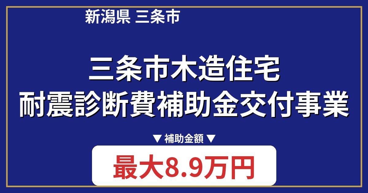 新潟県三条市では、地震に強い安全な住まいづくりを支援するため、「三条市木造住宅耐震診断費補助金交付事業」を実施しています。