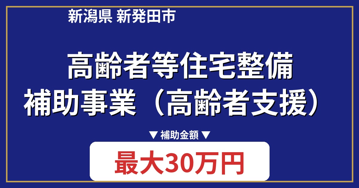 新潟県新発田市では、高齢者の方が住み慣れた家で安心して自立した生活を送れるよう、住宅の改修を支援する「高齢者等住宅整備補助事業(高齢者支援)」を実施しています。