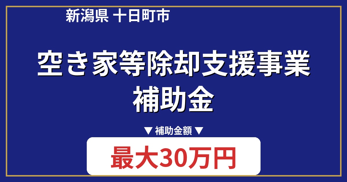 新潟県十日町市では、空き家等の除却を支援する「空き家等除却支援事業補助金」を提供しています。