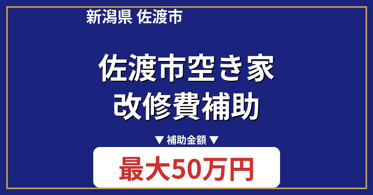 佐渡市空き家改修費補助は、空き家バンクに登録された物件の改修費用の一部を補助する制度です。改修費用の1/2、最大50万円(条件により加算あり)が補助されます。不要物の撤去費用も対象となり、最大20万円の補助が受けられます。