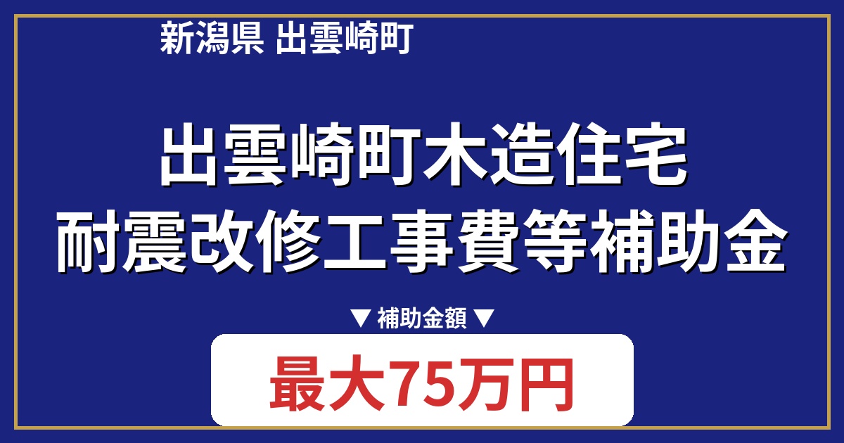 新潟県出雲崎町では、地震に強い安全な住まいづくりを支援するため、「出雲崎町木造住宅耐震改修工事費等補助金」を提供しています。