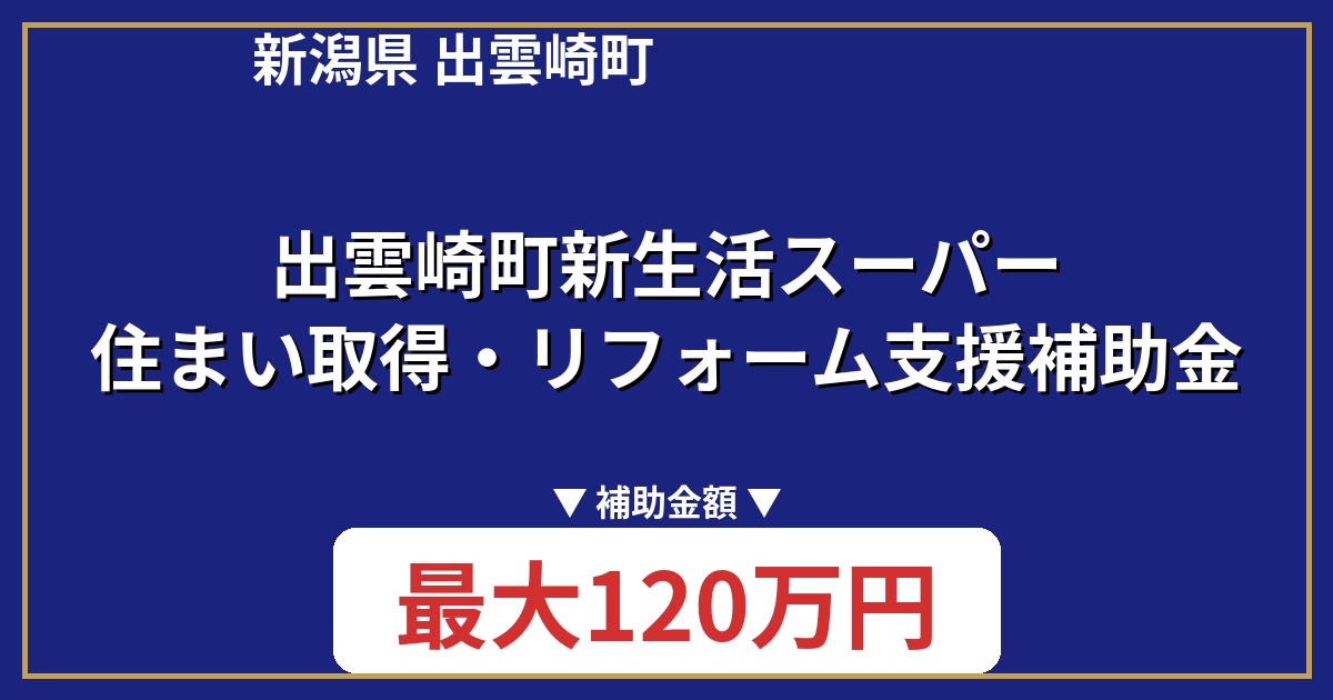 | 制度名 | 出雲崎町新生活スーパー住まい取得・リフォーム支援補助金 |