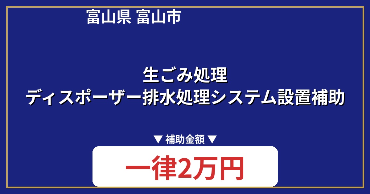 富山市では、生ごみ処理ディスポーザー排水処理システムの設置を支援する補助金制度があります。この制度を活用することで、環境に配慮した生活を始めるとともに、初期費用を抑えることが可能です。富山市にお住まいで、ディスポーザー排水処理システムの設置を検討されている方は、ぜひこの機会にご活用ください。