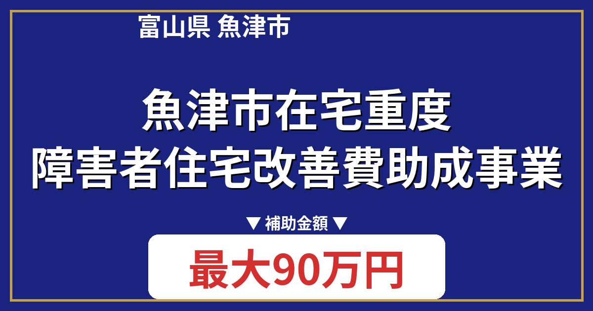 この制度は、魚津市に在住の重度障害者がいる世帯に対し、居室、浴室、トイレなどのバリアフリー改修費用を補助するものです。