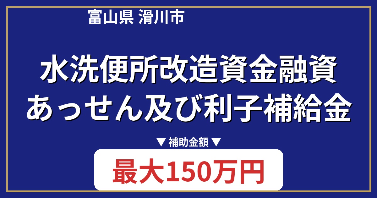 【富山県 滑川市】「水洗便所改造資金融資あっせん及び利子補給金」とは?金額や対象工事をわかりやすく解説