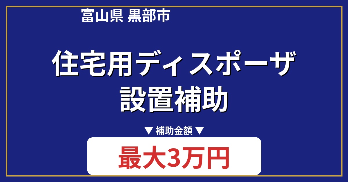 富山県黒部市では、生ごみの減量と資源の有効活用を促進するため、住宅用ディスポーザの設置を支援する補助金制度があります。