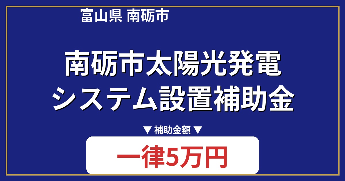 南砺市太陽光発電システム設置補助金は、太陽光発電システムの設置費用の一部を補助する制度です。