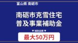 補助金の交付には、予算の範囲内で審査があります。申請期間や必要書類など、詳細については必ず南砺市の公式ホームページをご確認ください。設置機器は新品に限ります。