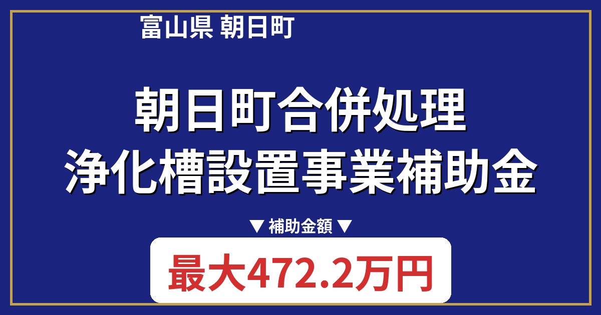 この補助金は、朝日町内における合併処理浄化槽の設置費用を一部補助するものです。対象となるのは、5人槽から50人槽までの合併処理浄化槽で、設置に要する費用から一定額を控除した額が補助されます。申請には条件がありますので、詳細をご確認ください。
