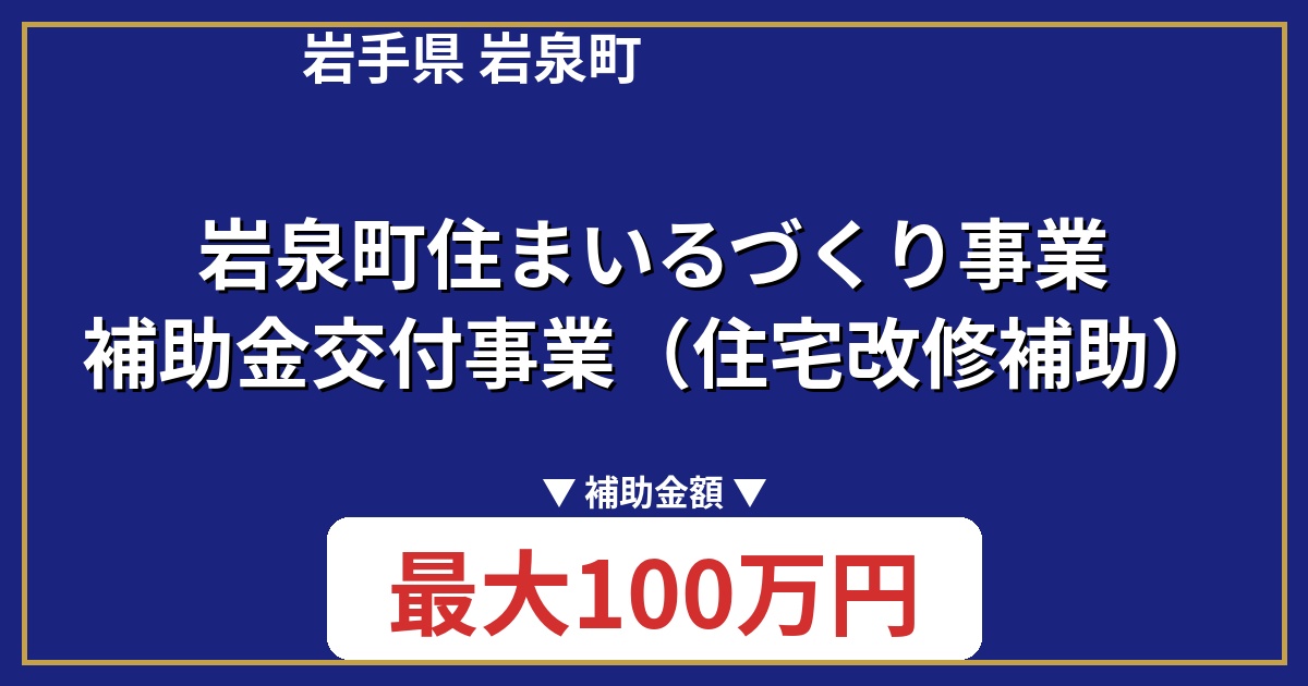 本記事では、補助金の詳細や申請方法、注意点などをわかりやすく解説します。岩泉町で住宅リフォームを検討されている方は、ぜひご活用ください。