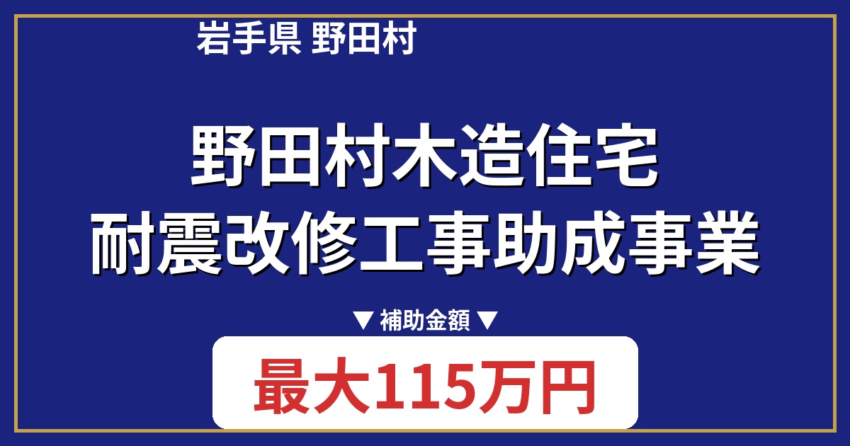 | 制度名 | 野田村木造住宅耐震改修工事助成事業 |