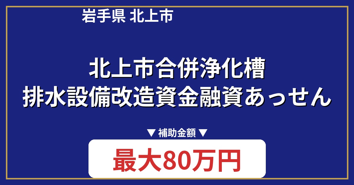 | 制度名 | 北上市合併浄化槽排水設備改造資金融資あっせん及び利子補給制度 |