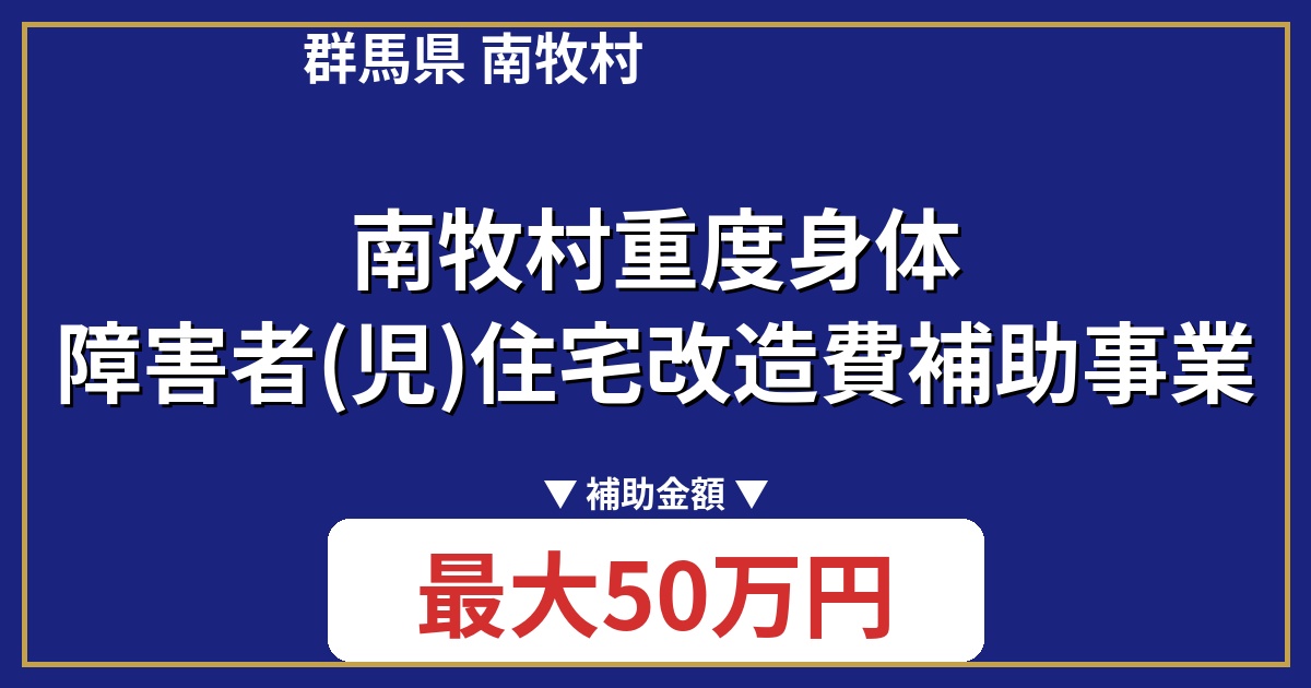 南牧村重度身体障害者(児)住宅改造費補助事業は、村内に居住する重度身体障害者(児)の方の住宅を、障害に適するように改造する費用を補助する制度です。浴室、便所、玄関、台所などの改修が対象となり、工事費用の6分の5以内、最大50万円まで補助されます。