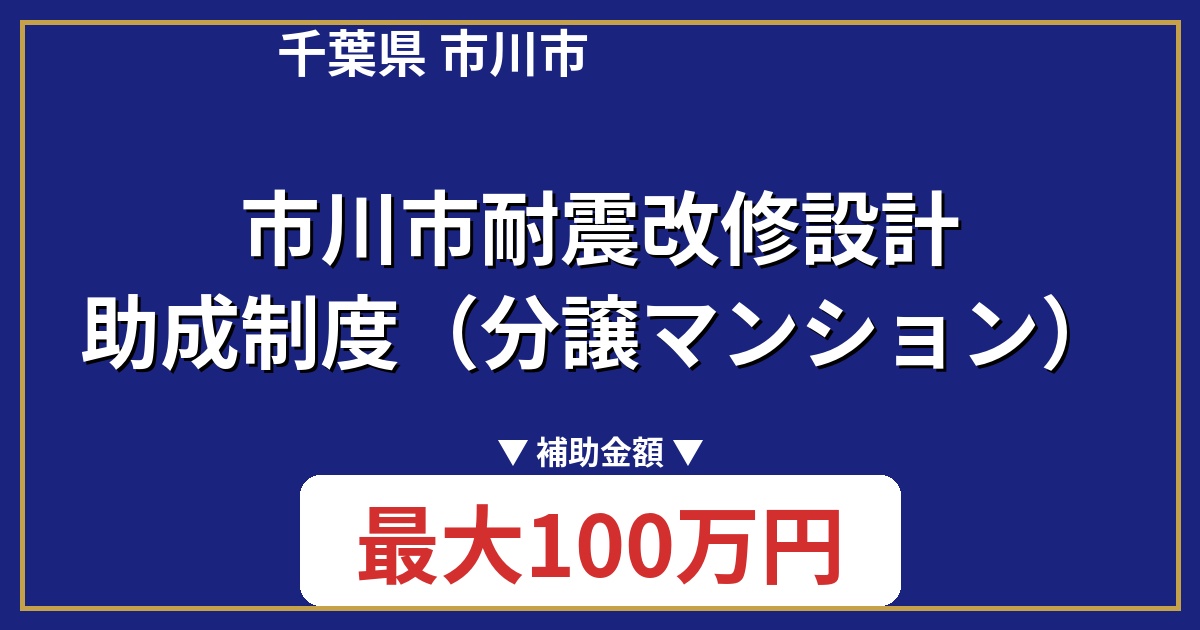| 制度名 | 市川市耐震改修設計助成制度(分譲マンション) |