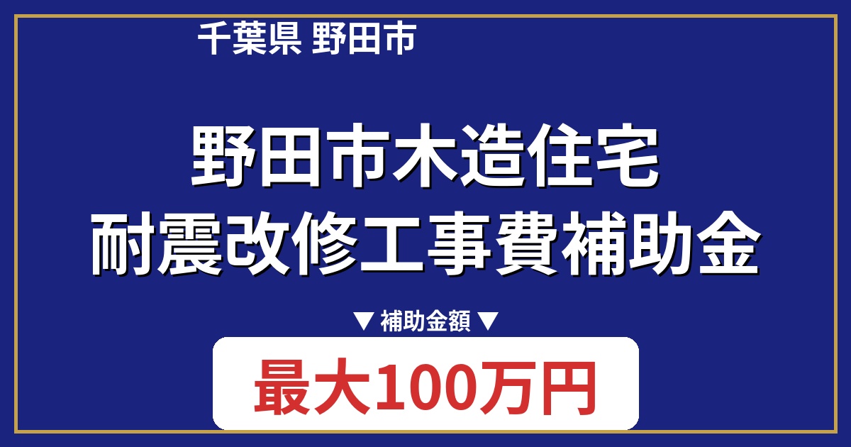 | 制度名 | 野田市木造住宅耐震改修工事費補助金 |