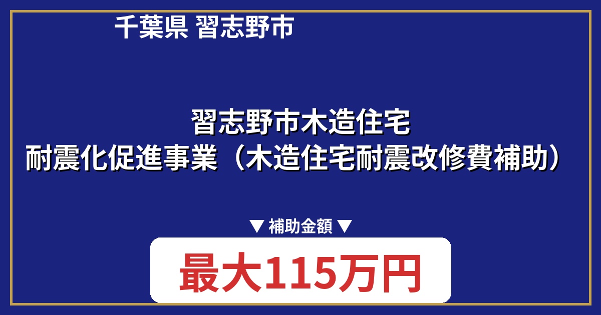 制度名 習志野市木造住宅耐震化促進事業(木造住宅耐震改修費補助)