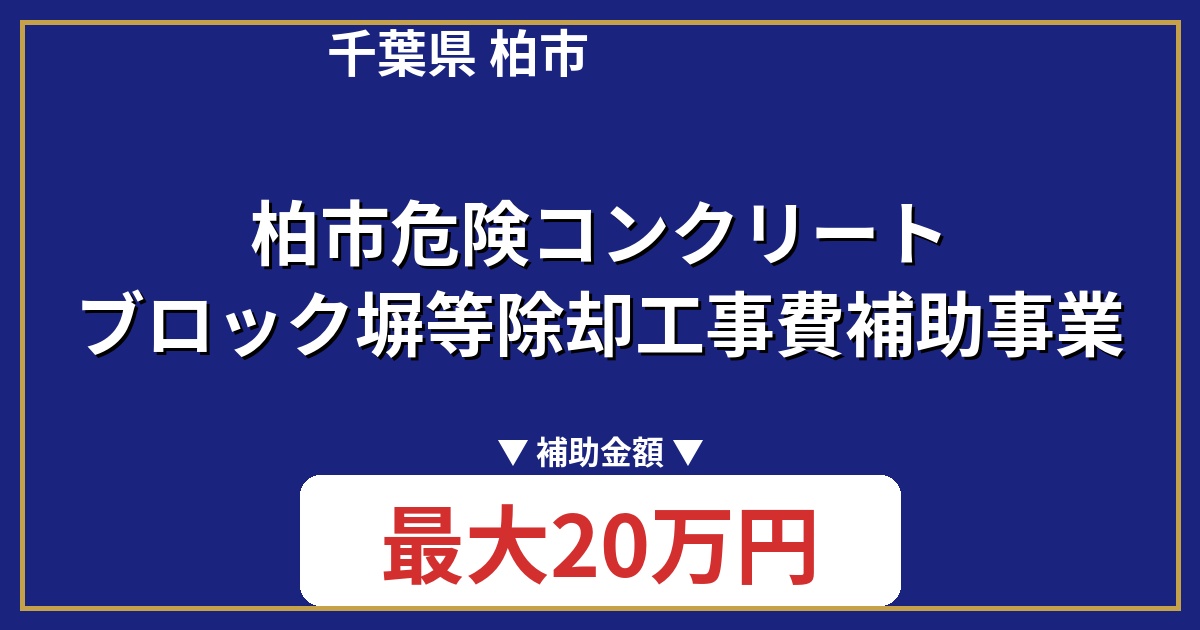| 制度名 | 柏市危険コンクリートブロック塀等除却工事費補助事業 |