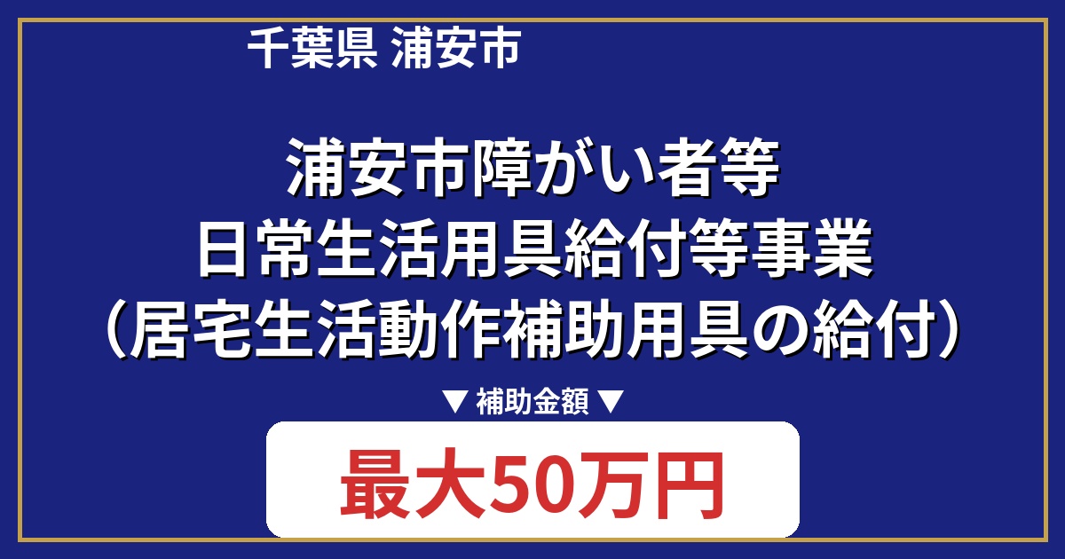 | 制度名 | 浦安市障がい者等日常生活用具給付等事業(居宅生活動作補助用具の給付) |
