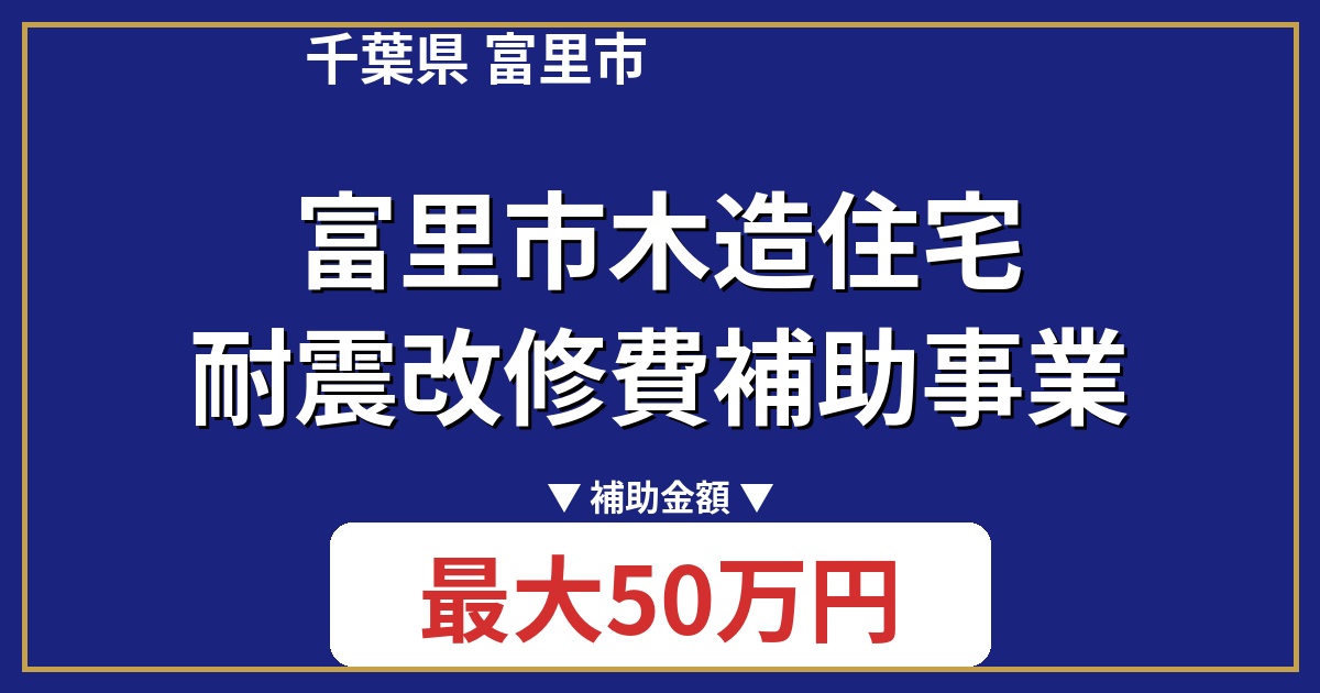 | 制度名 | 富里市木造住宅耐震改修費補助事業 |