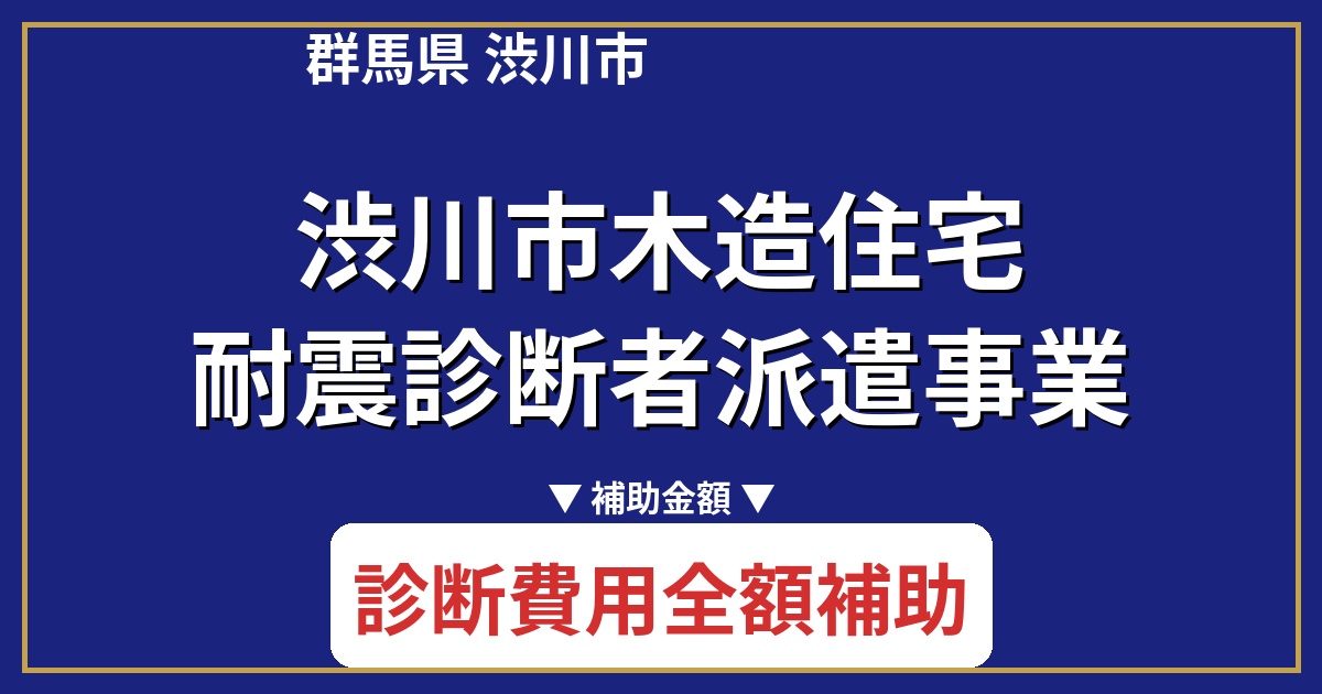 群馬県渋川市では、木造住宅の耐震診断を支援する「渋川市木造住宅耐震診断者派遣事業」を実施しています。