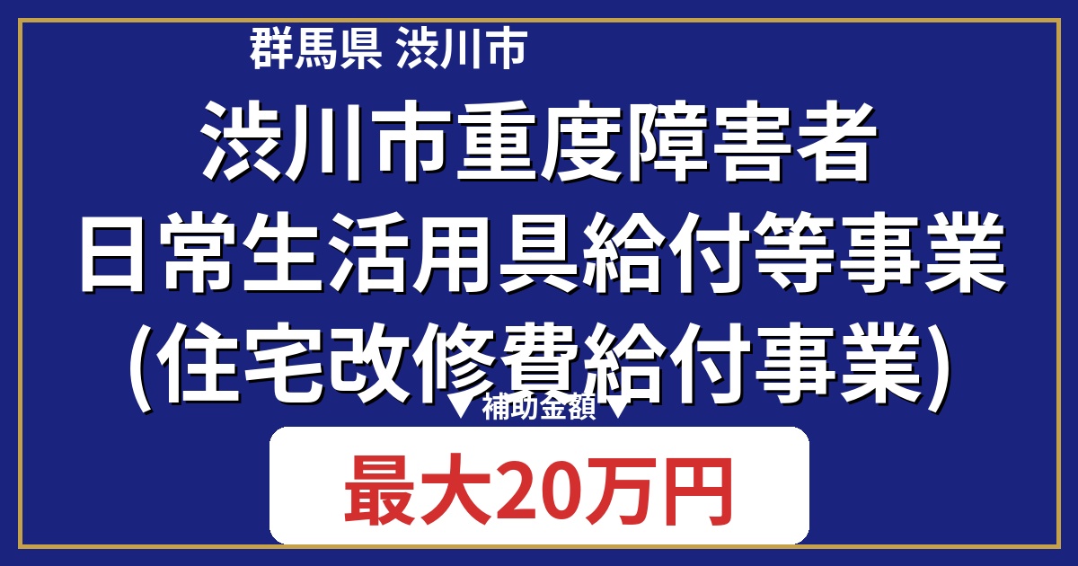 | 制度名 | 渋川市重度障害者日常生活用具給付等事業(住宅改修費給付事業) |