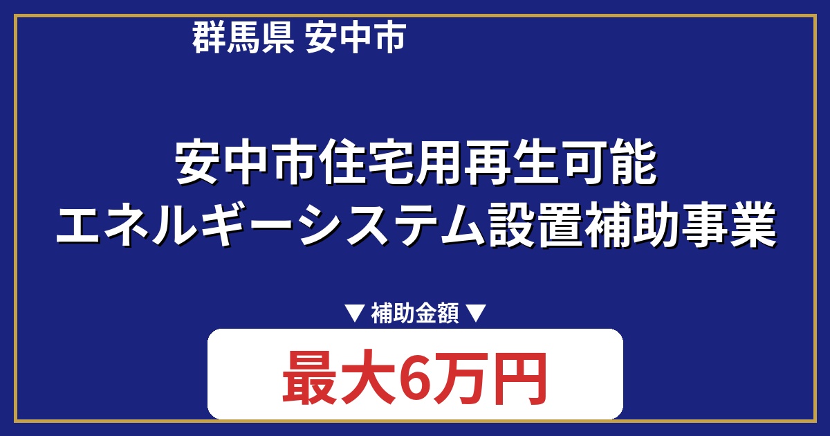 群馬県安中市では、住宅への再生可能エネルギーシステム導入を支援する「安中市住宅用再生可能エネルギーシステム設置補助事業」を実施しています。