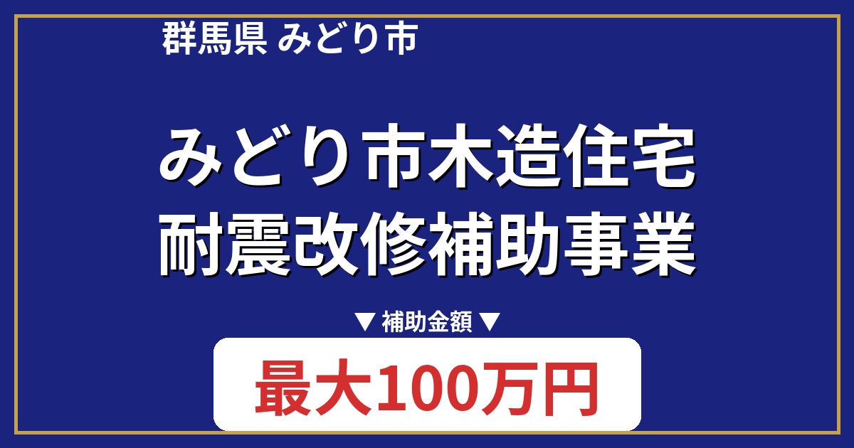 | 制度名 | みどり市木造住宅耐震改修補助事業 |