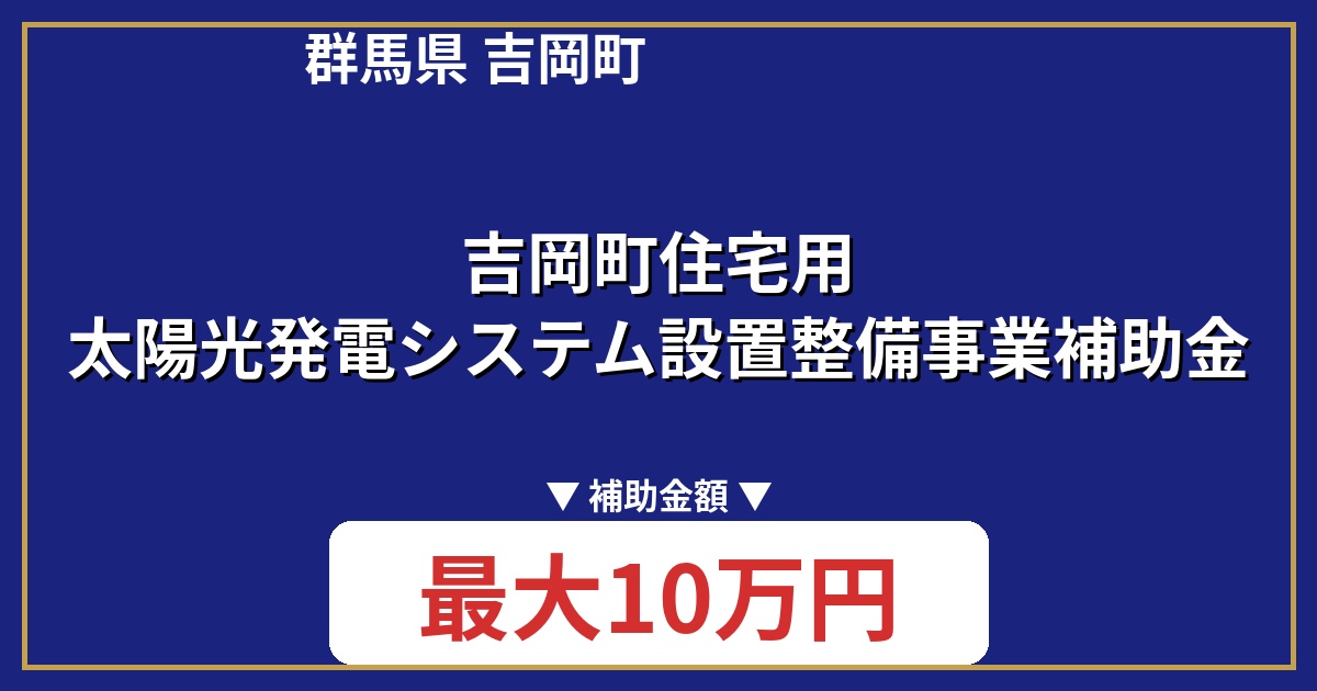 | 制度名 | 吉岡町住宅用太陽光発電システム設置整備事業補助金 |