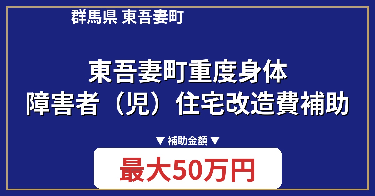 東吾妻町重度身体障害者(児)住宅改造費補助 公式詳細ページ »
